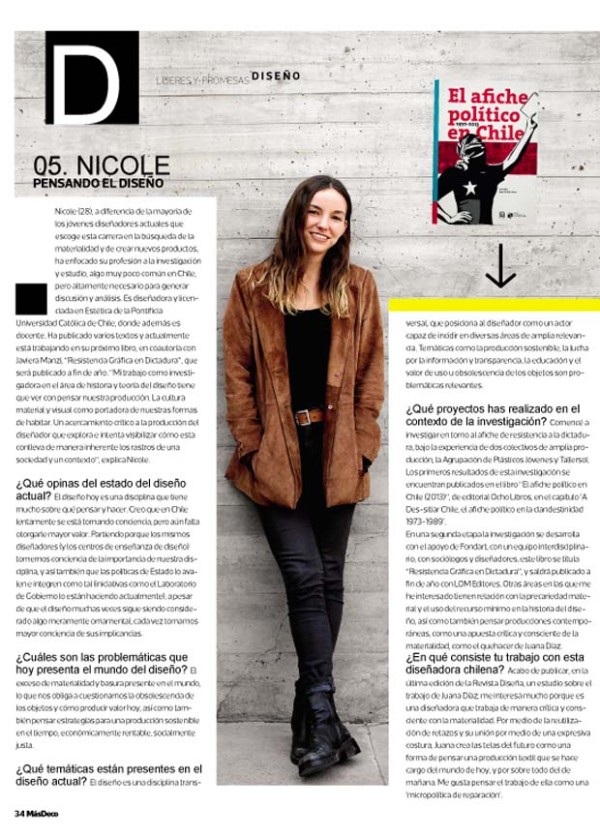 Reportaje de revista MásDeco de La Tercera destaca 29 líderes promesas, entre ellas las profesoras de la Escuela de Diseño, Camila Ríos y Nicole Cristi.