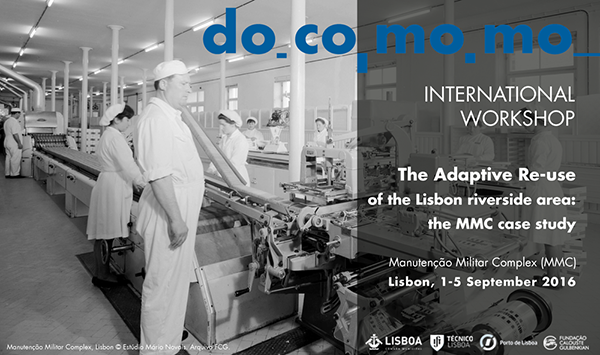 El Taller Internacional DOCOMOMO, “La reutilización adaptada de la zona ribereña de Lisboa: el estudio de caso de MMC” se llevará a cabo en la Universidad de Lisboa, entre el 1 y 5 de septiembre de 2016 en el marco de la 14ª DOCOMOMO Internacional, bajo el tema “Reutilización adaptada: el movimiento moderno hacia el futuro.
