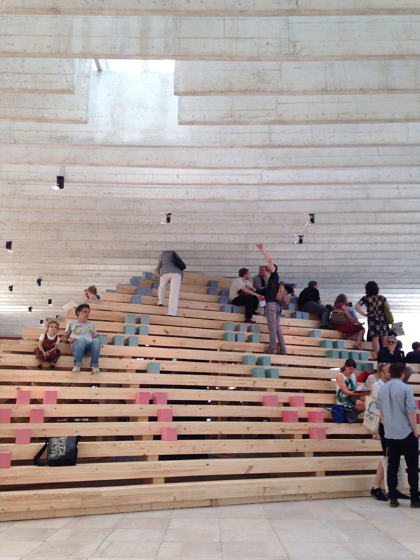 Este es el giro social propuesto por el arquitecto y es en este contexto en el que se inauguró este sábado el evento de arquitectura más importante del mundo. La UC destaca por su participación y la comitiva fue liderada por el rector Ignacio Sánchez, autoridades de la Facultad de Arquitectura, Diseño y Estudios Urbanos (FADEU) y un número importante de alumnos, queines llegaron a Venecia a participar de las actividades y levantar algunas propuestas propias. De este modo, durante la tarde del sábado, el rector Sánchez y autoridades de la FADEU se reunieron en la inauguración con Aravena para iniciar un recorrido por los pabellones. La cita se realizó en una antesala de los pabellones internacionales, donde el equipo de Elemental, oficina liderada por Aravena, realizó un montaje reutilizando más de 100 toneladas de material desechado por la pasada Bienal de Arte.