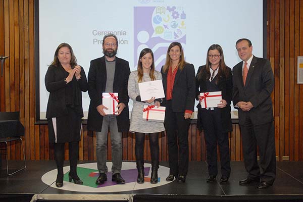 El pasado jueves 9 de junio se realizó en el Centro de Innovación UC (Campus San Joaquín) la ceremonia de premiación del IV Concurso Innova UC. En dicha instancia, el equipo de la Facultad de Arquitectura, Diseño y Estudios Urbanos (FADEU) formado por el Subdirector de Desarrollo EARQ Umberto Bonomo y la Asistente Shakti Feuerhake y la Secretaria Katherin Lavin de Educación Contínua EARQ, recibió el tercer premio del jurado. El premio correspondió a un Ipad para cada miembro del equipo.