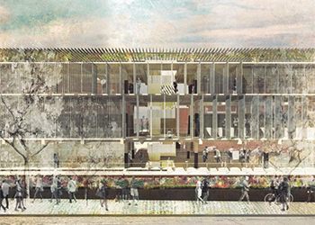 Alberto Moletto (41) [EARQ] tuvo la respuesta a mediados de diciembre del año pasado. La Facultad de Arquitectura, Diseño y Estudios Urbanos de la Universidad Católica, en conjunto con la Dirección de Infraestructura de la PUC y la Compañía Manufacturera de Papeles y Cartones (CMPC), habían convocado a un concurso para el diseño del nuevo edificio para esta facultad, en Lo Contador. Entre los requerimientos de la convocatoria había un principio claro: el nuevo edificio se emplazaría en el sitio que hoy ocupa un pabellón prefabricado, ubicado en la calle Los Navegantes, que alcanza un pequeño espacio de la esquina de Álvaro Casanueva y que, actualmente, alberga a los profesores del campus. Entre 35 propuestas, la presentada por los arquitectos Alberto Moletto y Sebastián Paredes fue la ganadora.
