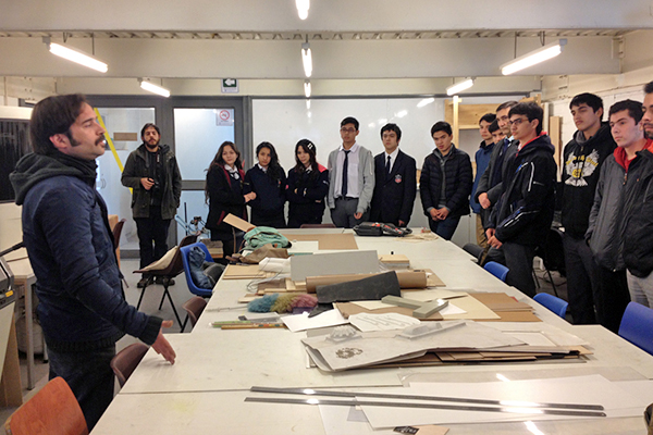 El profesor Alejandro Sofia [EARQ] y el Arquitecto PUC José Miguel Armijo dirigen workshop “Desafío Explora 2016”, orientado a diseñar atrapanieblas en las lógicas de la BIOMIMETICA. El workshop es parte de las actividades del año de la Biomimética, organizado por el Par Explora RM Norte de la Comisión Nacional de Ciencia y Tecnología (CONICYT), en el cuál participan Estudiantes de los Liceos “República de Siria”, “Liceo Nº1 Javiera Carrera”, “Juanita Fernández Solar”, Instituto de Humanidades Luis Campino” e “Instituto Nacional Gral. José Miguel Carrera”.