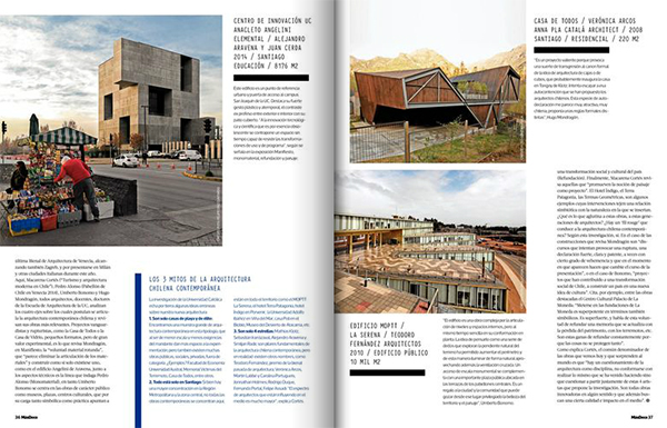 Frente a este boom de la arquitectura chilena de los últimos 20, 25 años, y con la intención de profundizar más allá de lo descriptivo -que es lo que solemos conocer de estas obras-, la Facultad de Arquitectura, Diseño y Estudios Urbanos de la Universidad Católica de Chile ha realizado la investigación “El Discurso de la Arquitectura Contemporánea Chilena: Cuatro Debates Fundamentales” a una exposición que fue parte de las muestras paralelas de la última Bienal de Arquitectura de Venecia, alcanzando también Zagreb, y por presentarse en Milán y otras ciudades italianas este año.