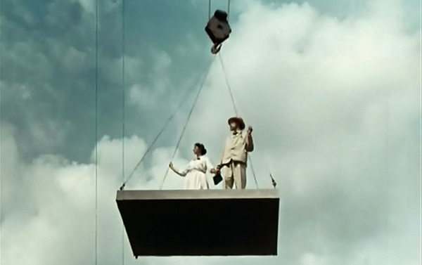 A sleepwalking Olive Oyl steps nonchalantly between swinging steel beams in a 1930s Popeye cartoon, performing a death-defying aerial ballet high above a skyscraper construction site. On the adjacent screen, a Soviet animation from the 60s shows characters leaping on to a prefab concrete panel and being whisked up by a crane into the clouds, floating over a scene of mass workers’ housing down below. The video diptych continues in frenzied jump-cuts, one screen continuously depicting the presence of steel beams thrusting into the frame of American films and cartoons of the 20th century, the other showing the ubiquity of flying concrete slabs in their Russian counterparts. It is a mesmerising sequence, opposing beams to panels, riveters to welders, skyscrapers to housing blocks. In both, the structural system plays a heroic role as the saviour of the mechanised modern world.