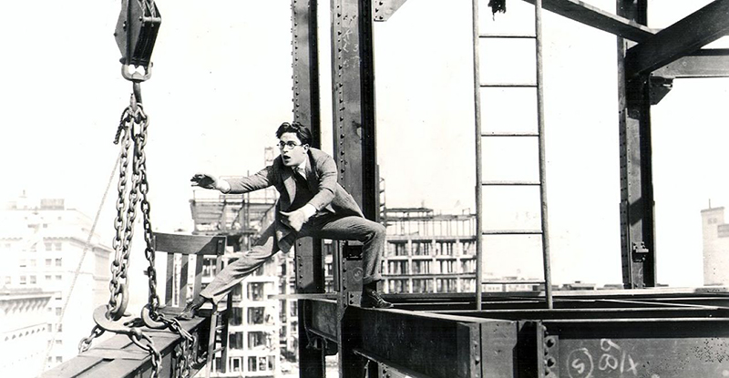 La película Never Weaken (1921) de Harold Lloyd inauguró el género de “comedia sobre vigas de acero”. Fuente: La Tercera