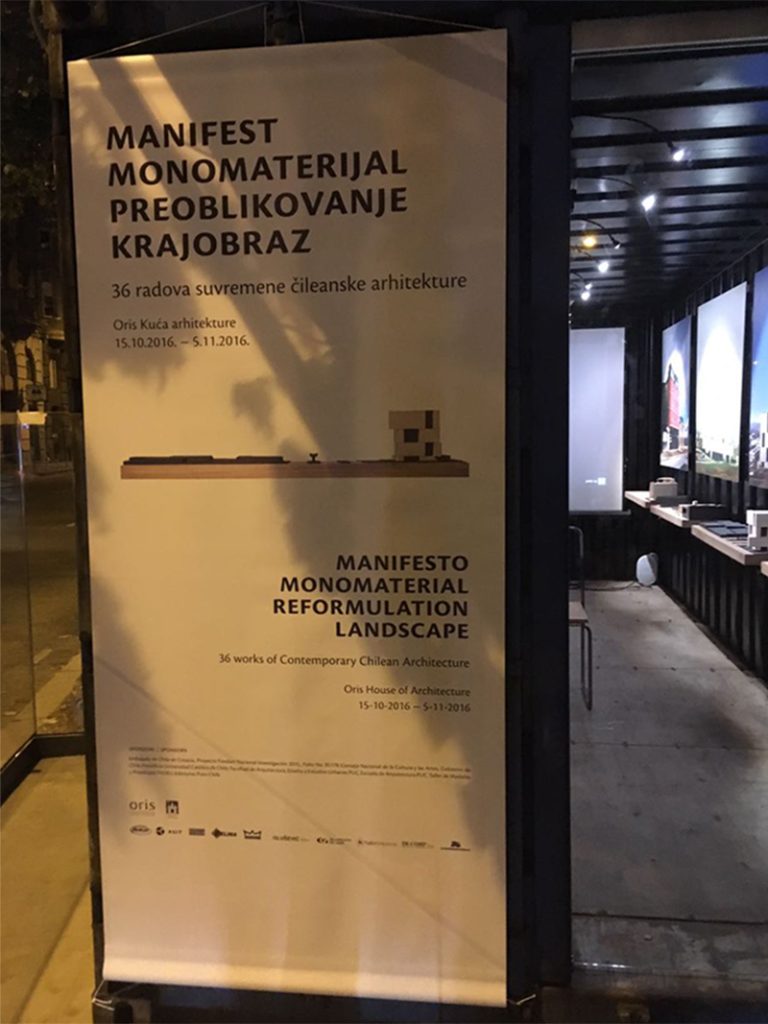 Acompañando el ciclo de conferencias se montaron además las exposiciones: “No more No less” de Pezo von Ellrichshausen y Contemporary Chilean Architecture de Umberto Bonomo en con junto con los también académicos Arquitectura UC Pedro Alonso, Macarena Cortés y Hugo Mondragón. Esta última, había sido previamente expuesta este mismo año en la IUAV en Venecia, Italia, y es resultado de la investigación “El Discurso de la Arquitectura Contemporánea Chilena, cuatro Debates fundamentales” Proyecto Fondart Nacional Investigación 2015. Folio No. 85178 del Consejo Nacional de la Cultura y las Artes. Para la cual colaboraron la Facultad de Arquitectura, Diseño y Estudios Urbanos UC, la Escuela de Arquitectura UC, el Taller de Modelos y Prototipos FADEU y Ediciones Puro Chile.