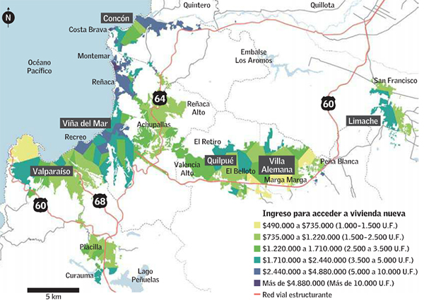 “Esto es peor que lo observado en Santiago, donde el 36% tiene acceso. En esta zona, además de los altos precios fijados por las segundas viviendas, hay un factor geográfico por las laderas, que dificulta la construcción y la hace más cara. También los ingresos de la población son, en promedio, menores”, explica Luis Fuentes, subdirector del Instituto de Estudios Urbanos e investigador del Centro de Desarrollo Urbano Sustentable (Cedeus) de la U. Católica.