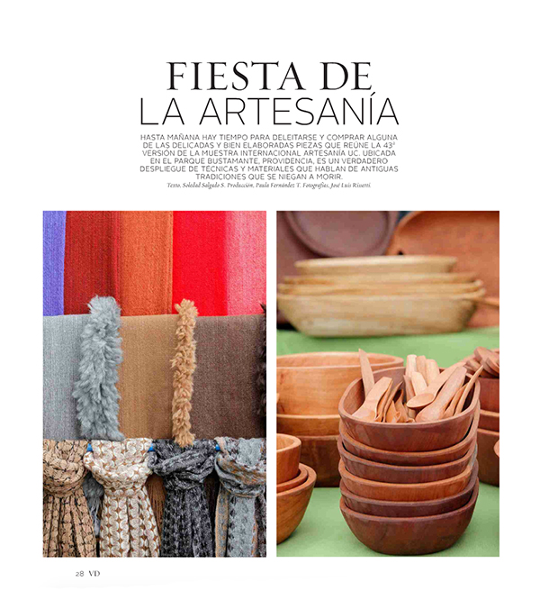 Por Soledad Salgado S. (texto), Paula Fernández (producción) y José Luis Risetti (fotografías), Revista VD Reportaje de la Revista Vivienda y Decoración destaca la Muestra de Artesanía UC, organizada por el Programa de Artesanía de la Escuela de Diseño UC, que congregó a lo mejor de la artesanía nacional e internacional de 15 países. El reportaje enseña […]