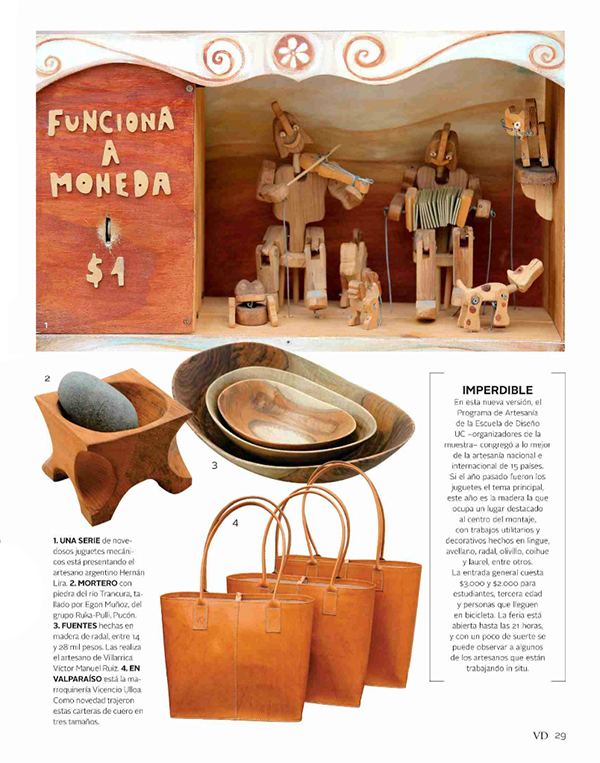 Reportaje de la Revista Vivienda y Decoración destaca la Muestra de Artesanía UC, organizada por el Programa de Artesanía de la Escuela de Diseño UC, que congregó a lo mejor de la artesanía nacional e internacional de 15 países. El reportaje enseña el trabajo de algunos de los artesanos invitados a esa 43ª edición.