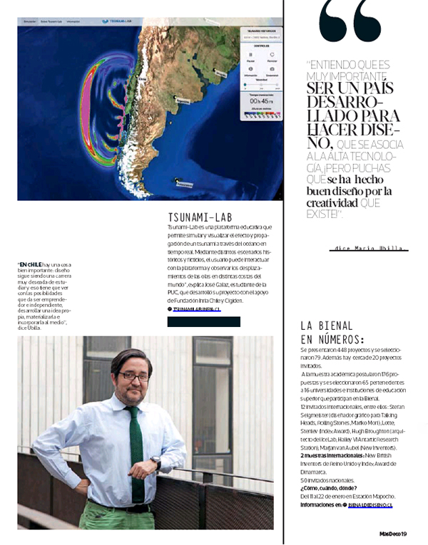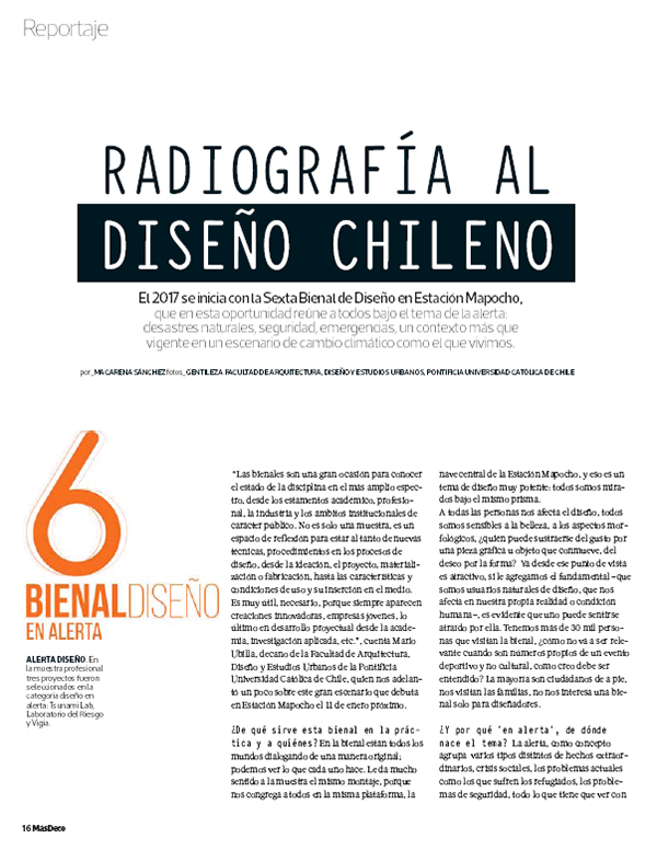 La Revista MásDeco de La Tercera publica artículo sobre la Sexta Bienal de Diseño en la Estación Mapocho coorganizada por la Escuela de Diseño UC. Habla el decano FADEU UC, Mario Ubilla.