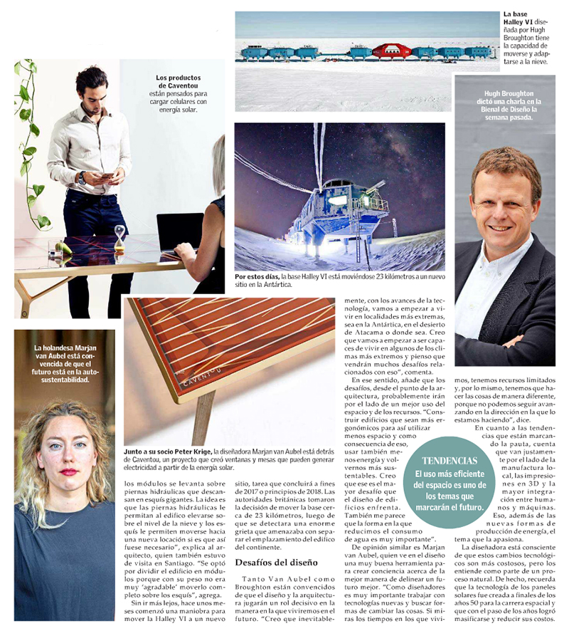 Tanto Van Aubel como Broughton están convencidos de que el diseño y la arquitectura jugarán un rol decisivo en la manera en la que viviremos en el futuro. “Creo que inevitablemente, con los avances de la tecnología, vamos a empezar a vivir en localidades más extremas, sea en la Antártica, en el desierto de Atacama o donde sea. Creo que vamos a empezar a ser capaces de vivir en algunos de los climas más extremos y pienso que vendrán muchos desafíos relacionados con eso”, comenta.