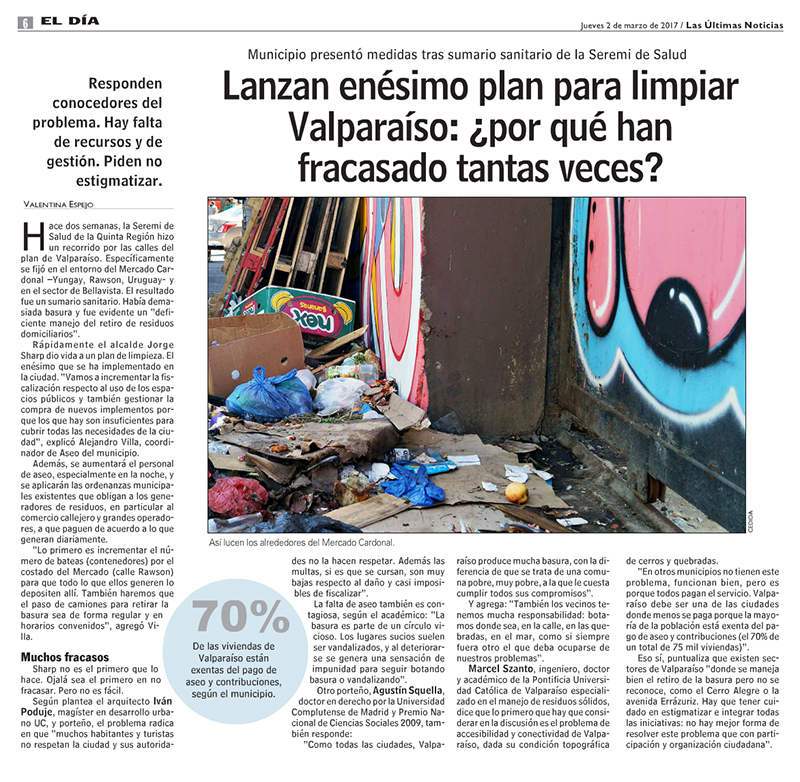 Por Valentina Espejo, Las Últimas Noticias Las Últimas Noticias publica artículo sobre plan para limpiar Valparaíso. Habla el académico Arquitectura UC Iván Poduje. + Revisa el reportaje completo aquí.