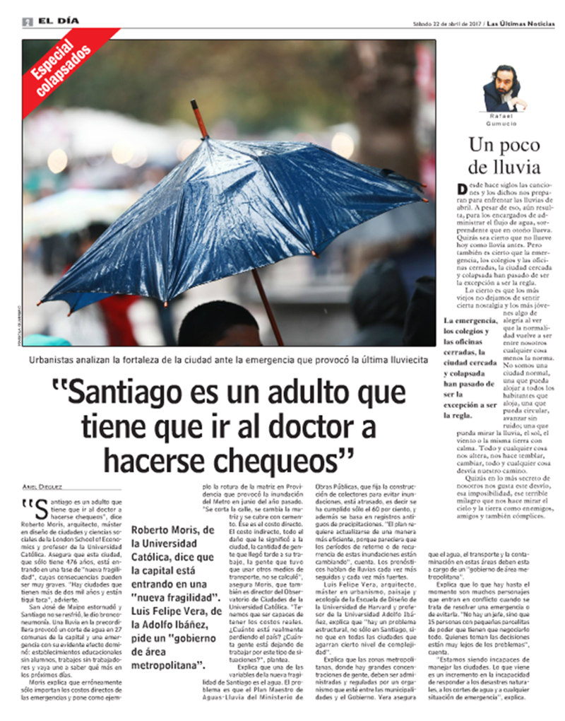 Diario entrevista al académico FADEU y director del Observatorio de Ciudades UC, Roberto Moris, sobre la emergencia provocada por últimas lluvias en Santiago.