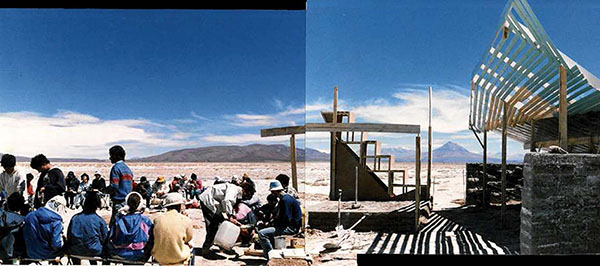 En alguna parte de la casa de Juan Ignacio Baixas hay unos videos que se grabaron con una cámara tan grande que necesitaba una maleta para las baterías. Así registró sus ‘Travesías’, una parte fundamental de su experiencia en la PUCV. “Me tocó un gran cambio curricular, en 1980. Comenzaron estas actividades de taller de arquitectura que consistían en viajes a lugares que tenían una cierta importancia para lo que podríamos llamar una posición poética sobre América que tenía la escuela, basada en la poesía de Godofredo Iommi, uno de los fundadores. Nos tocó ir a lugares bien increíbles; llevar 70 u 80 alumnos al Cabo Froward, una punta que es la última tierra continental hacia el sur, una especie de peñón enorme donde el Estrecho de Magallanes hace un quiebre. Construir ahí fue dificilísimo, pero una experiencia superimportante. Hicimos unos miradores en la punta del peñón y una cruz que era encargo de la PUCV”, recuerda Baixas. No ha vuelto, pero piensa que aún deben estar ahí porque estaban hechos de un hormigón prefabricado, lo que requirió construir en el bosque que prácticamente llegaba al agua y acarrear las piezas hasta 300 m de altura. “También fuimos al salar de Coipasa, en la frontera con Bolivia, y a Curimávida, hacia el interior de la cordillera en el sector de Los Vilos. Ahí está el punto donde la cordillera se acerca más al Pacífico, a unos 60 km. De hecho puedes ver el mar desde arriba”. Desde 1981 hasta 1985 Baixas participó en estas ‘travesías’ que no solo se trataban de buscar una poética geográfica sino también de crear sistemas constructivos y soluciones para las dificultades que estos ofrecían.