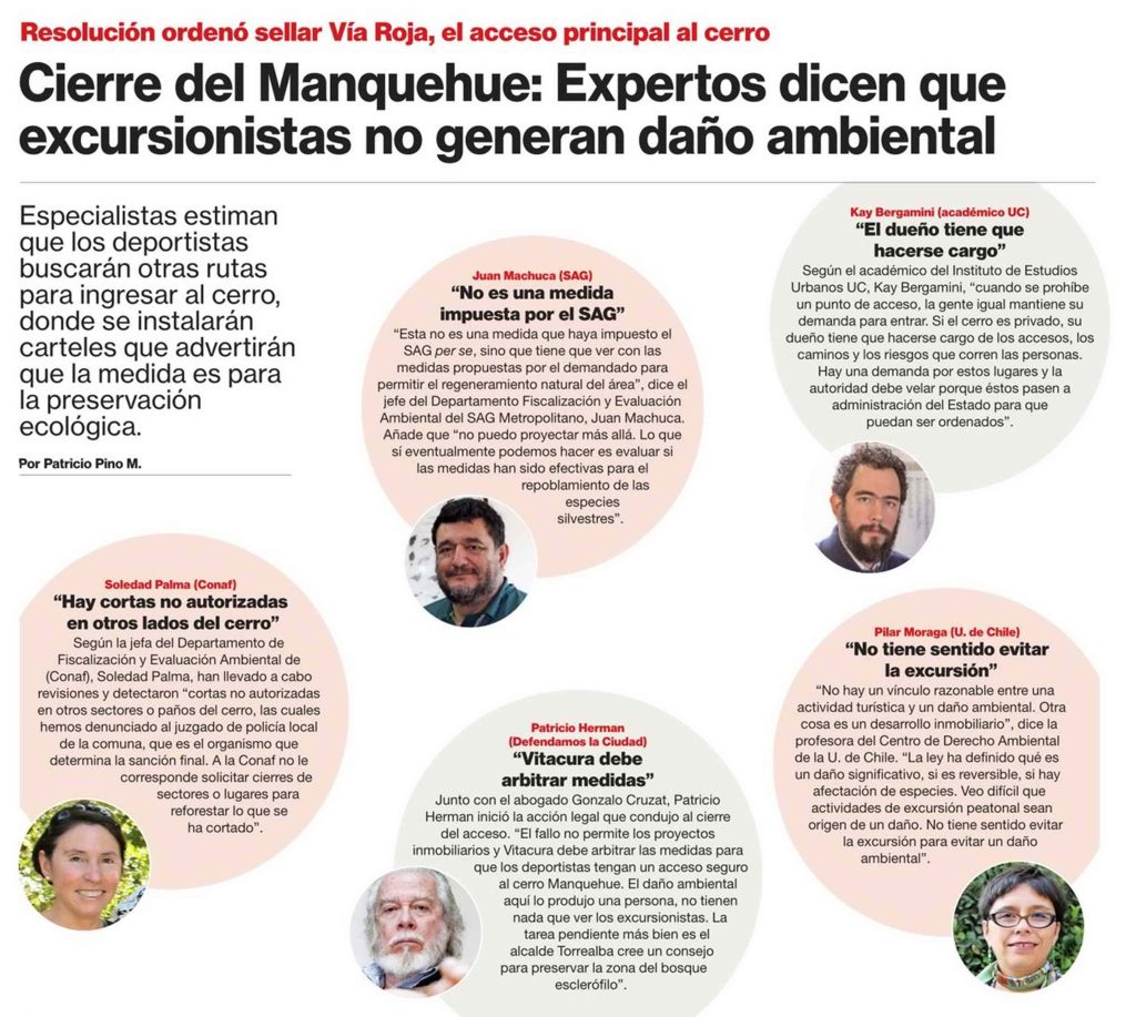 La Segunda entrevista a expertos sobre cierre del cerro Manquehue. Habla el académico e invistagador del Instituto de Estudios Urbanos, Kay Bergamini.