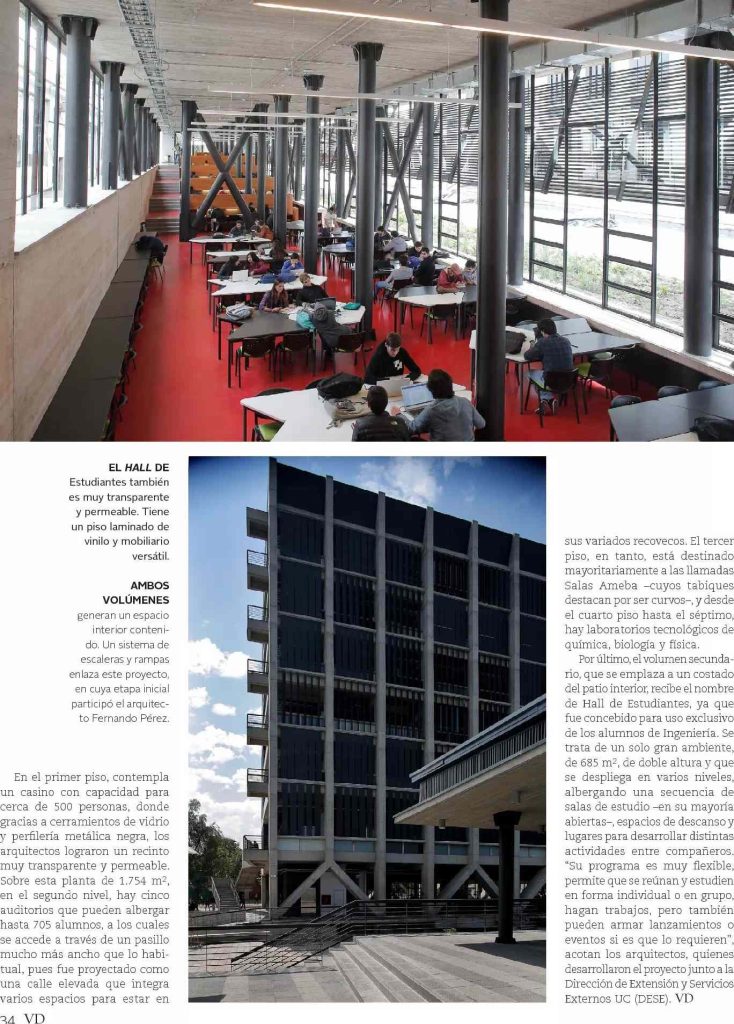La revista Vivienda y Decoración publicó un reportaje sobre el nuevo edificio de Ciencia y Tecnología de la Escuela de Ingenieria UC, obra proyectada por los arquitectos y académicos de la Escuela de Arquitectura, José Rosas y Phillipe Blanc.