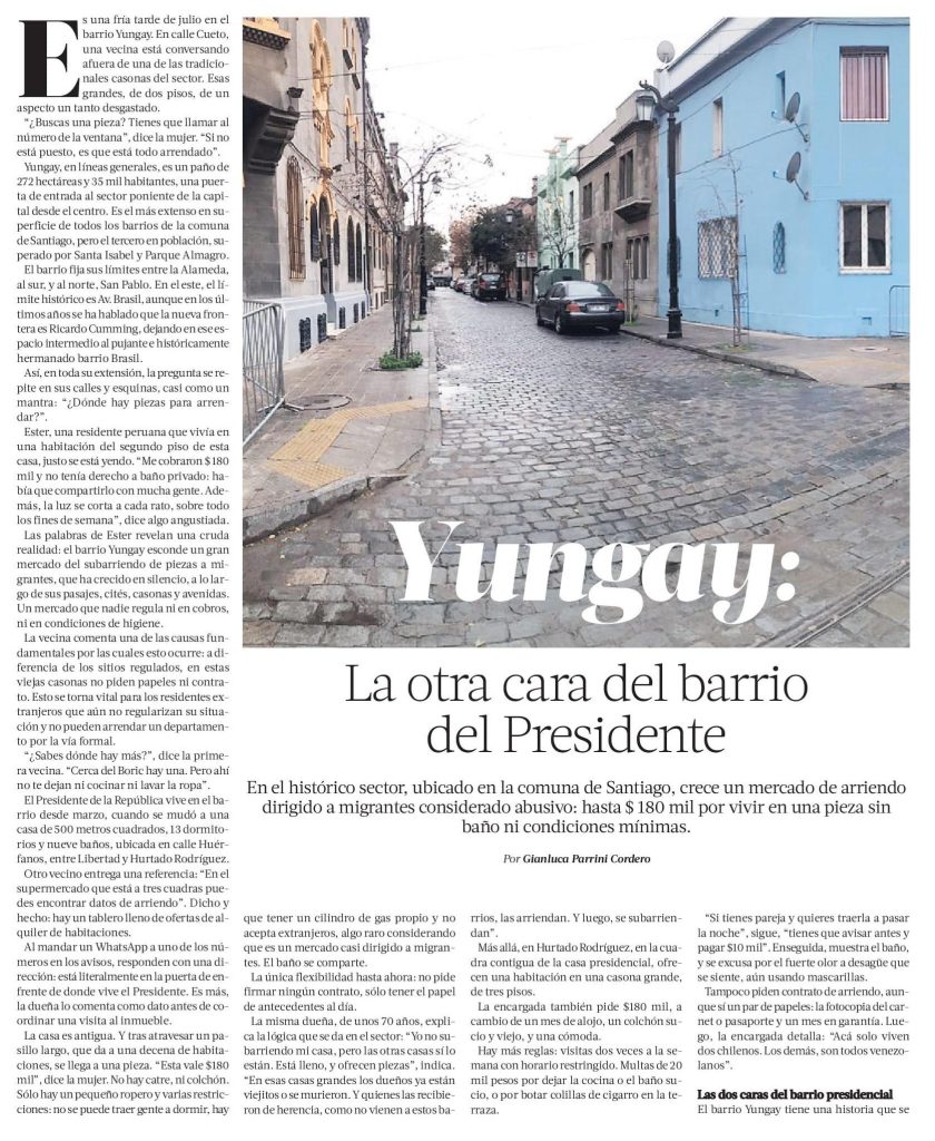 La Tercera destaca la otra cara del barrio Yungay: aumenta mercado de arriendo dirigido a migrantes considerado abusivo. Habla el profesor José Rosas.