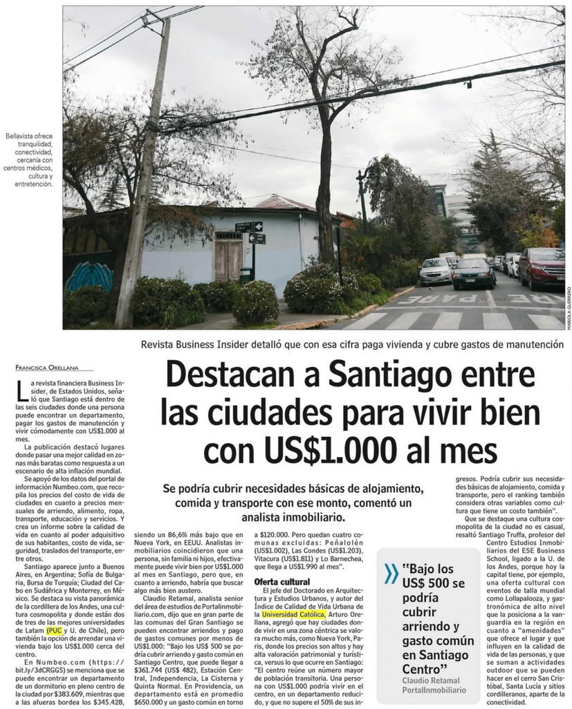 PRENSA I Destacan a Santiago entre ciudades para vivir bien con US$1000 al mes