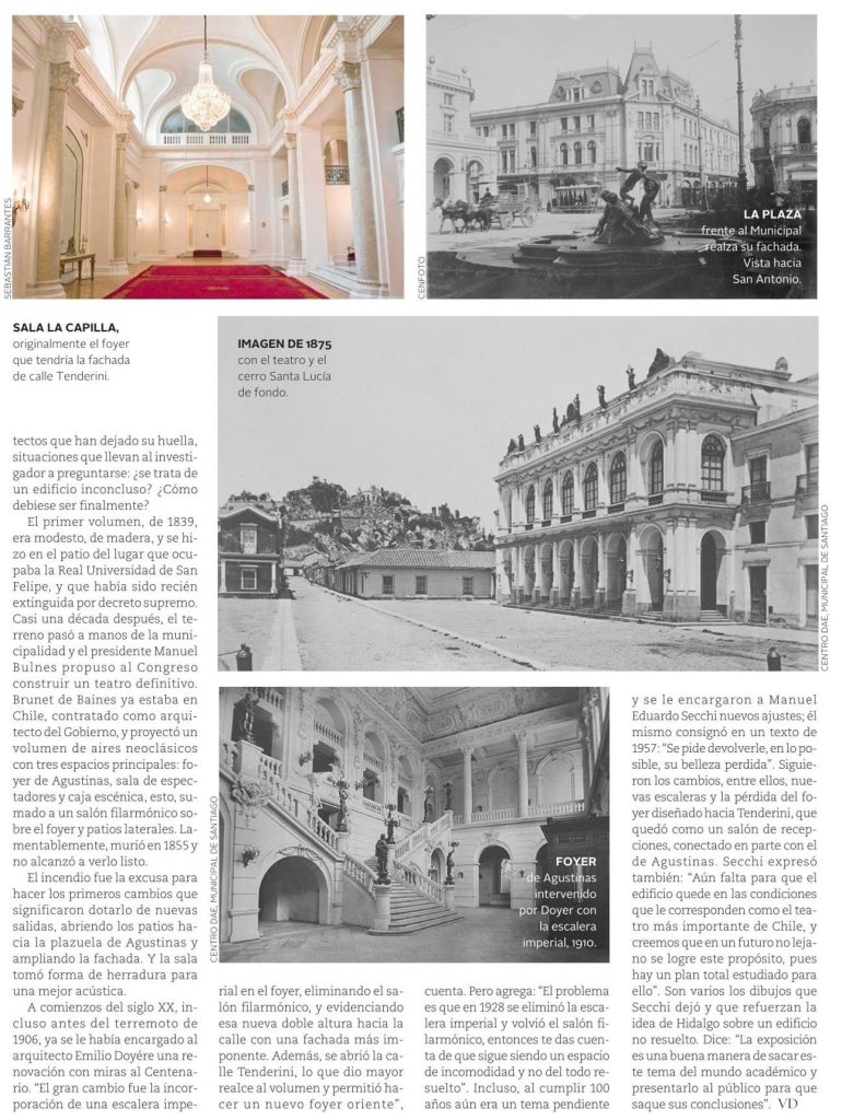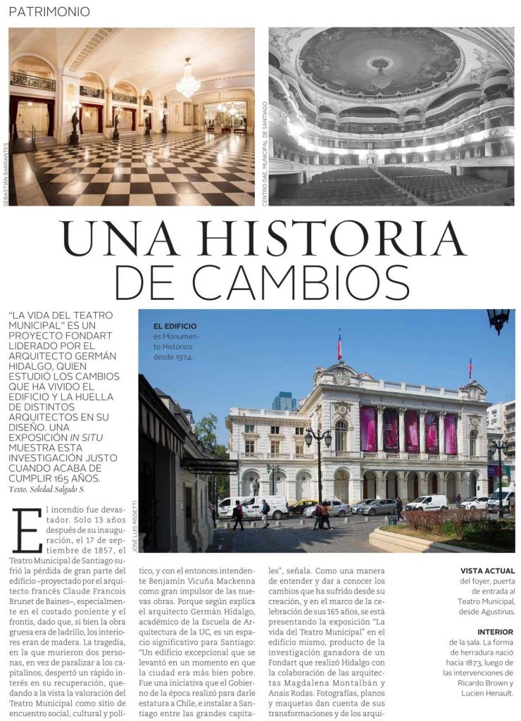 VD de El Mercurio destaca el proyecto Fondart “La vida del Teatro Municipal” liderado por el académico Germán Hidalgo, quien estudió los cambios que ha vivido el edificio y la huella de distintos arquitectos en su diseño.