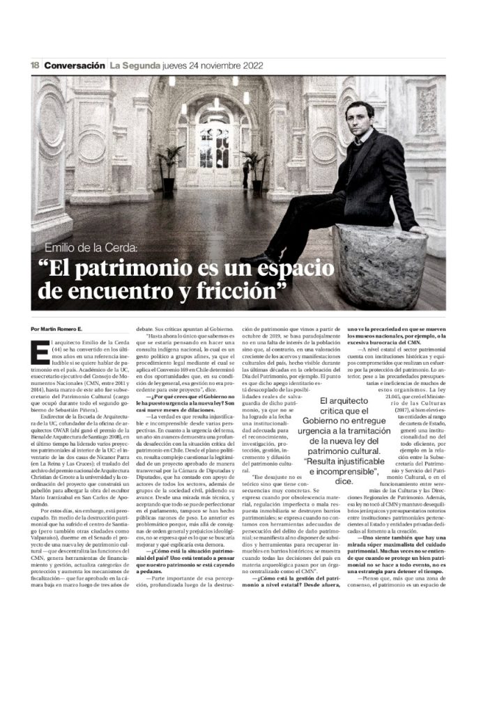 La Segunda destaca el artículo “El patrimonio es un espacio de encuentro y fricción”, donde se entrevista al académico de la escuela de Arquitectura, Emilio de la Cerda. + Revisa entrevista completa aquí.