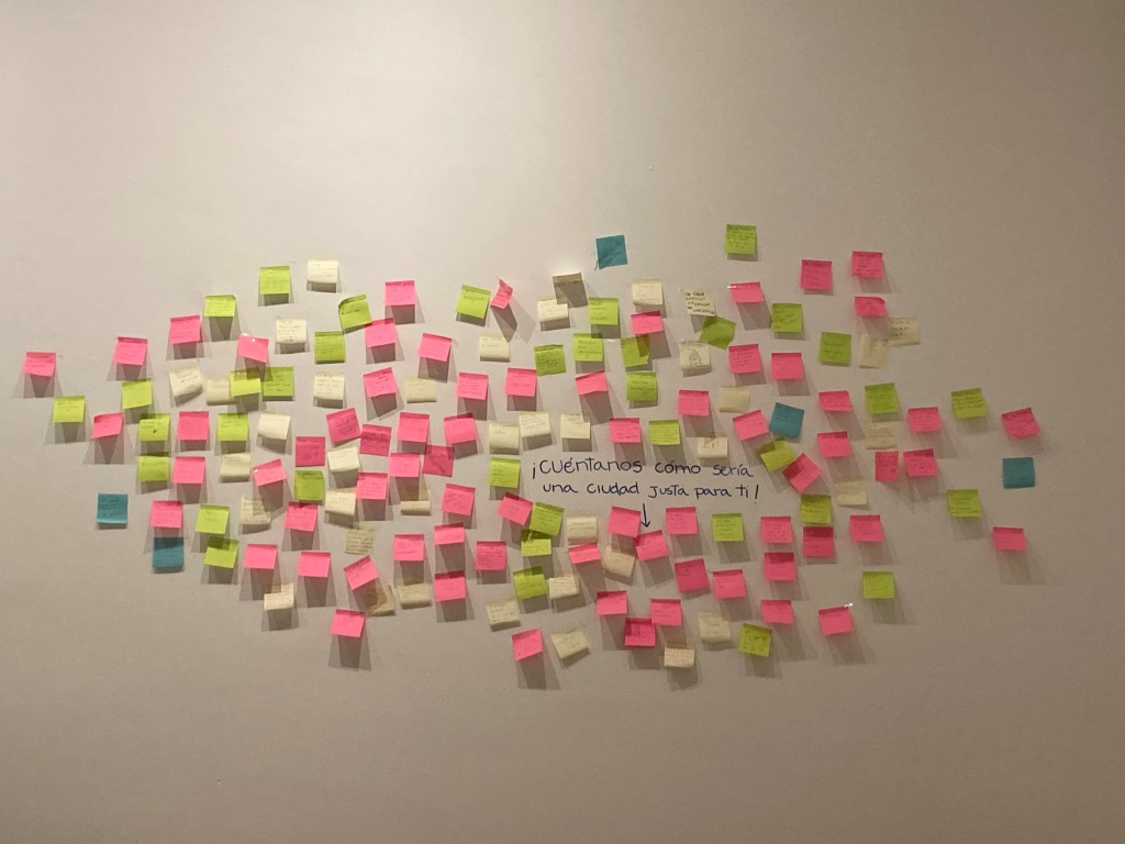 “Diseño de la ciudad justa” es una instancia lúdica y participativa para discutir sobre la “ciudad justa” —término acuñado por la académica estadounidense Susan Fainstein—. El juego está compuesto por un tablero de Santiago de gran tamaño y cuatro tipos de piezas: figuras rojas, representando la vivienda digna; figuras amarillas, representando el equipamiento social; figuras verdes, representando parques y espacios públicos; y figuras azules, representando el transporte asequible. De esta forma, el movimiento de piezas y jugadores busca levantar una discusión abierta en torno a problemáticas urbanas como la segregación, la desigualdad, la cohesión social y el acceso a una mejor calidad de vida.