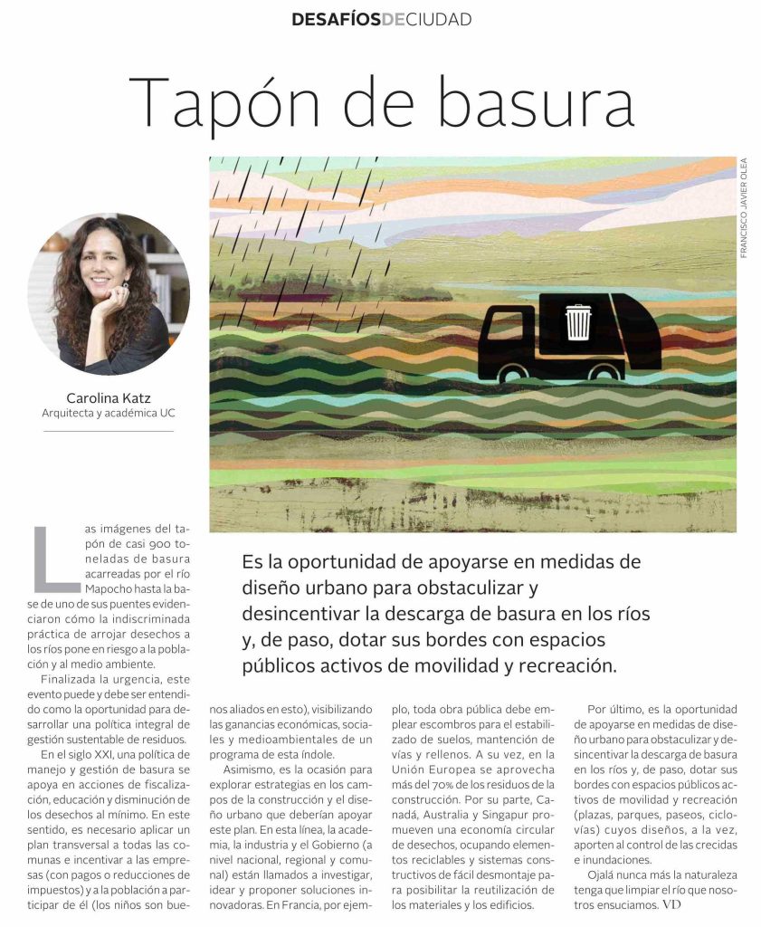 Revista VD de El Mercurio publica columna de la académica Carolina Katz: “Tapón de basura”. + Revisa columna completa aquí.