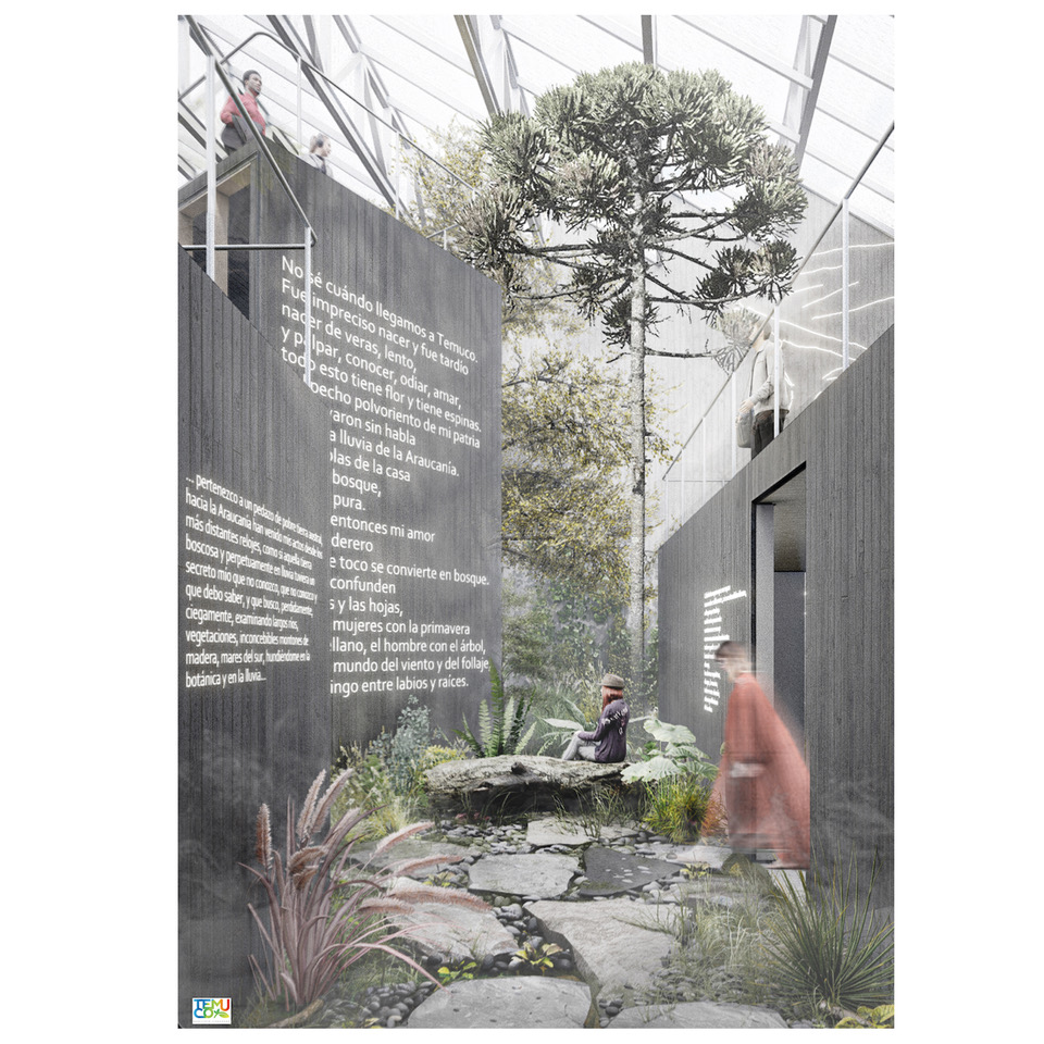 Como señala parte de la memoria del equipo liderado por Moletto: “Al igual que los gabinetes de curiosidades, que contenían en el mismo espacio lo secular, lo religioso, lo pagano, lo natural y lo artificial, el museo busca mezclar el mundo natural de la región de la Araucanía con accesorios, objetos, poemas y material audiovisual de Neruda, pone el territorio como algo a exponer, habitar, cuidar y mantener, creando esta relación íntima entre naturaleza, artefactos, literatura y visitantes”, reflexión basada en el poema ‘El bosque chileno’ de Pablo Neruda: “Me entra por las narices hasta el alma el aroma salvaje del laurel, el aroma oscuro del boldo… El ciprés de las Guaitecas intercepta mi paso… es un mundo vertical: una nación de pájaros, una muchedumbre de hojas”.