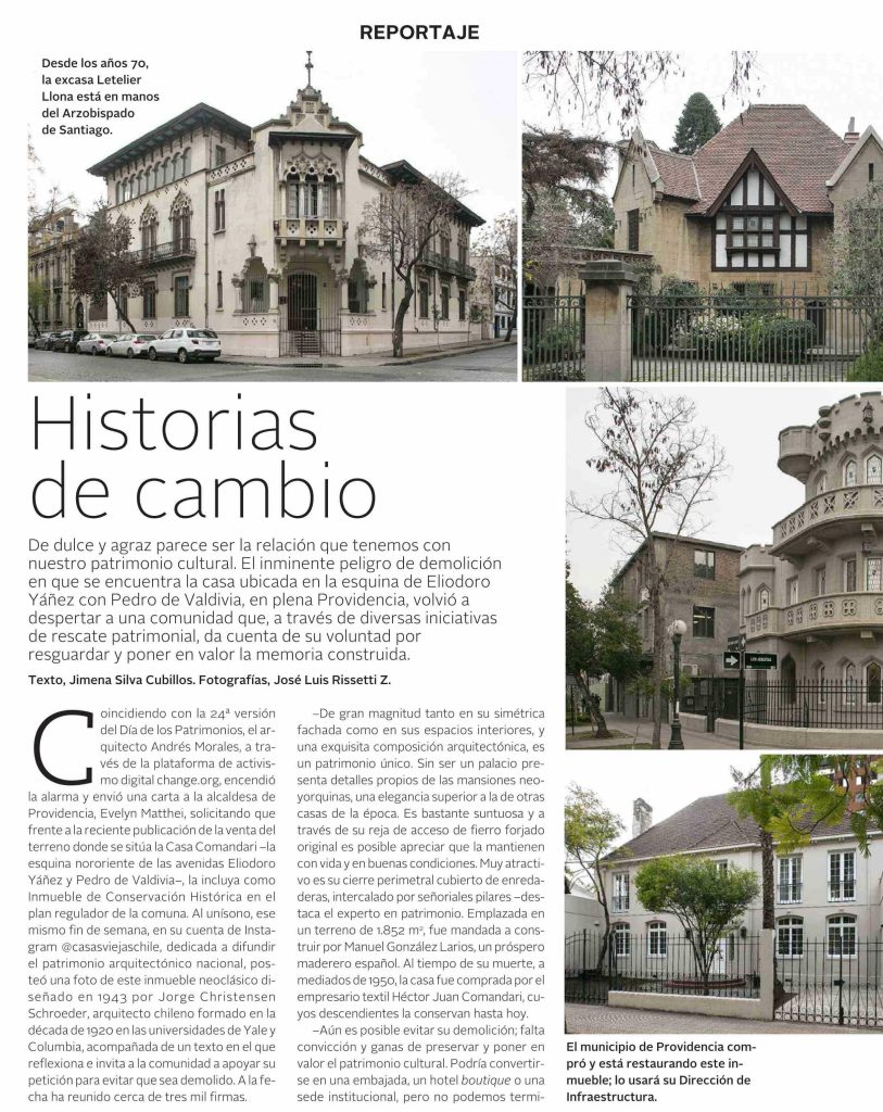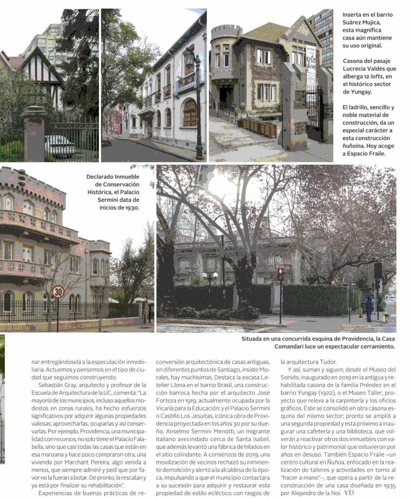 Revista VD El Mercurio destaca debate que generó el peligro de demolición en que se encuentra la casa patrimonial ubicada en la esquina de Eliodoro Yáñez con Pedro de Valdivia, en Providencia. Habla el profesor Sebastián Gray.