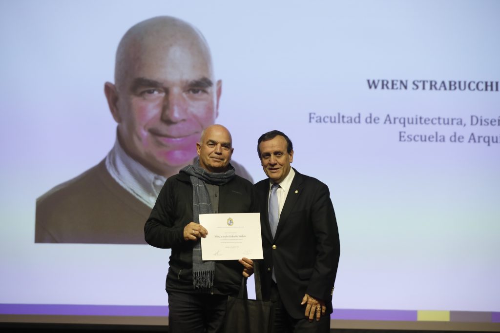 En el caso de la Facultad de Arquitectura, Diseño y Estudios Urbanos, FADEU, fueron reconocidos los profesores José Manuel Allard -de la escuela de Diseño- por sus 25 años de ejercicio académico; y de la escuela de Arquitectura los profesores Waldo Bustamante y Margarita Greene, en la categoría de los 30 años de servicio; y Juan José Ugarte junto a Wren Strabucchi en la categoría de 35 años de docencia.