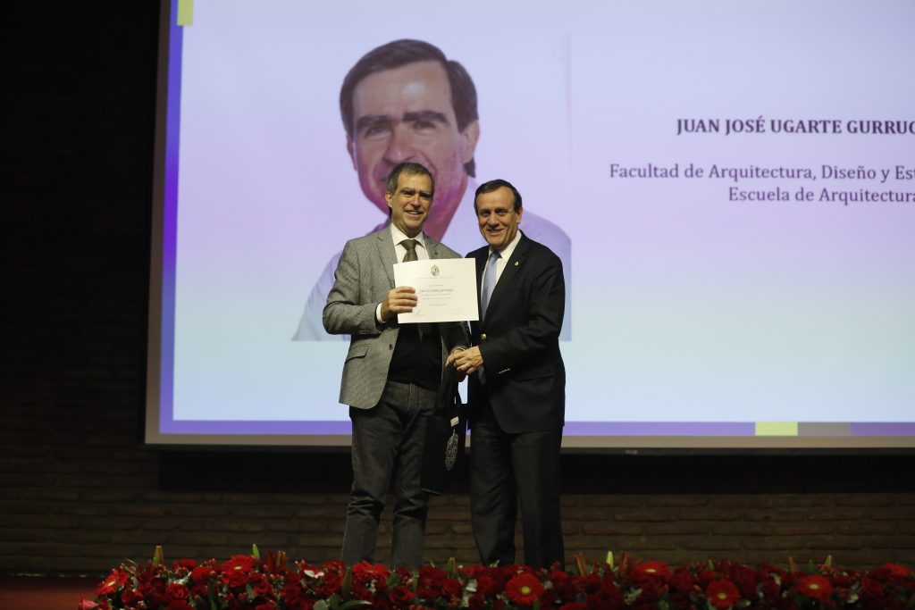 Por su parte, el Rector Sánchez sostuvo que “nosotros somos hijos de nuestros profesores en lo que hacemos y cada uno de nosotros puede poner de ejemplo a tres o cuatro profesores que nos han marcado fuertemente”, destacando el influyente rol que cumplen los académicos en el ámbito formativo y a través de la investigación.