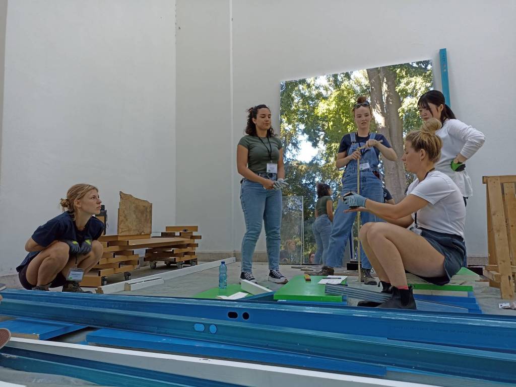 El workshop “Design-Build Maintenance 1:1” —organizado por Venice Biennale Lab, ARCH+ Summacumfemmer Büro Juliane Greb, Sto Foundation, AIT-Dialog— se realizó como parte de la programación del pabellón alemán “Open to Maintenance”, desarrollado en el marco de la Bienal de Arquitectura de Venecia 2023, y contó con la participación de estudiantes de diversas escuelas de arquitectura del mundo, entre ellas, la nuestra.