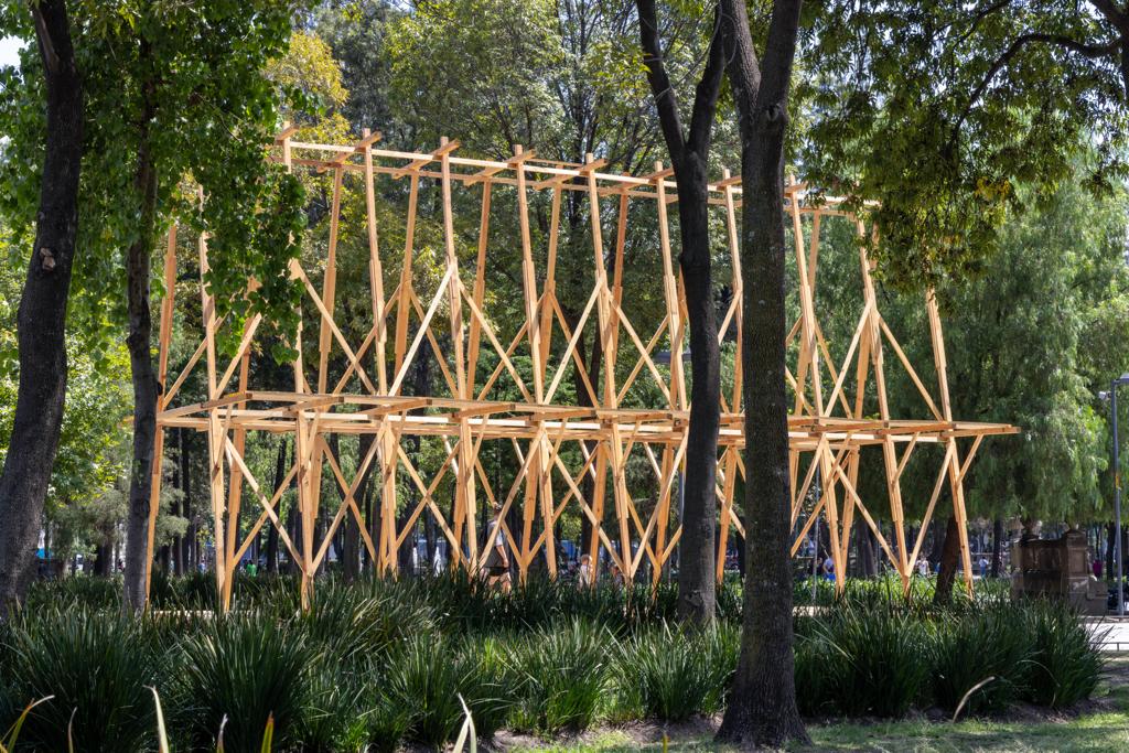 El proyecto —de 50 metros cuadrados de superficie— buscó poner a prueba dos variables del sistema: traducir un marco de madera diseñado en Chile a la realidad constructiva de México y proponer un sistema abierto donde la estructura sea soporte para que el pabellón y su espacio sea programado y re-programado a partir de un conjunto de intervenciones de los estudiantes de CENTRO y sus potenciales usos, diluyendo la autoría final en pos de un espacio de colaboración y coexistencia.