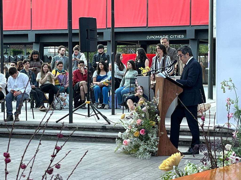 En la ocasión, el discurso por parte de los/as estudiantes estuvo a cargo de Leopoldo Donoso, Génesis López y Rosario Barassi; se entregaron los premios a la mejor tesis en cada magíster; se otorgó el “Premio Titulación 2023” a la estudiante Renata Grob, y también se entregaron los premios “Arquitecto Hernán Riesgo” (a José Tomás Mijac), y “Arquitecto Fernando Castillo Velasco” (a María Belén Larrondo).