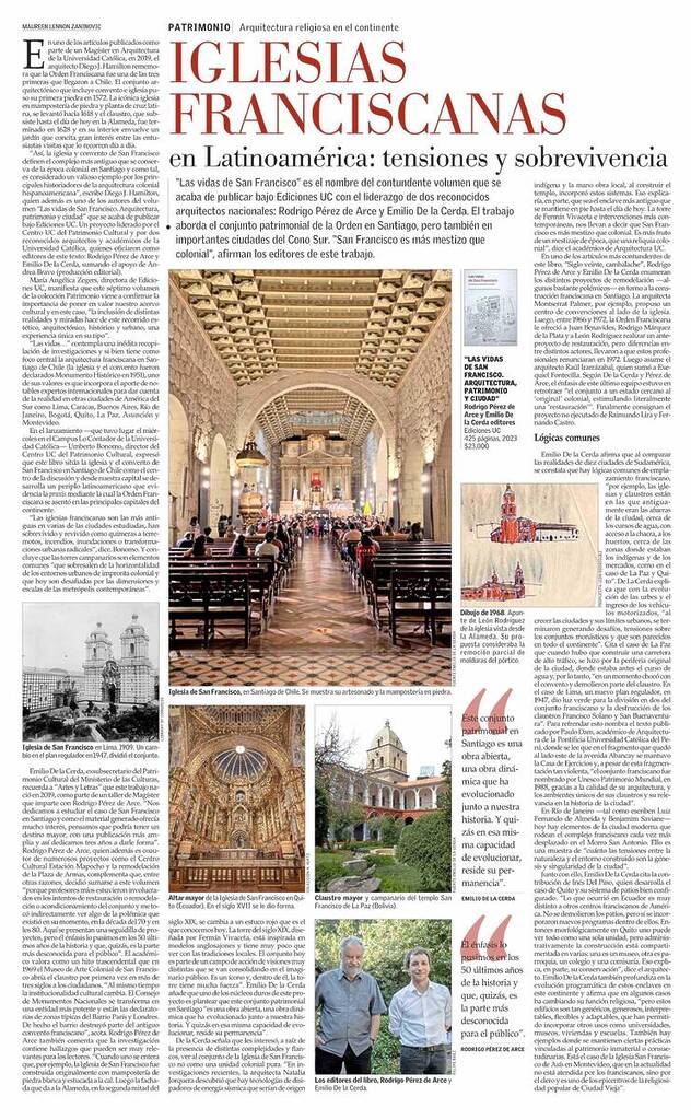 El Mercurio destaca el artículo “Iglesias franciscanas en latinoamericana: tensiones y sobrevivencias”, donde se entrevista a los editores del libro “Las vidas de San Francisco: Arquitectura, patrimonio y ciudad”, Rodrigo Pérez de Arce y Emilio De la Cerda. + Revisa nota completa aquí.