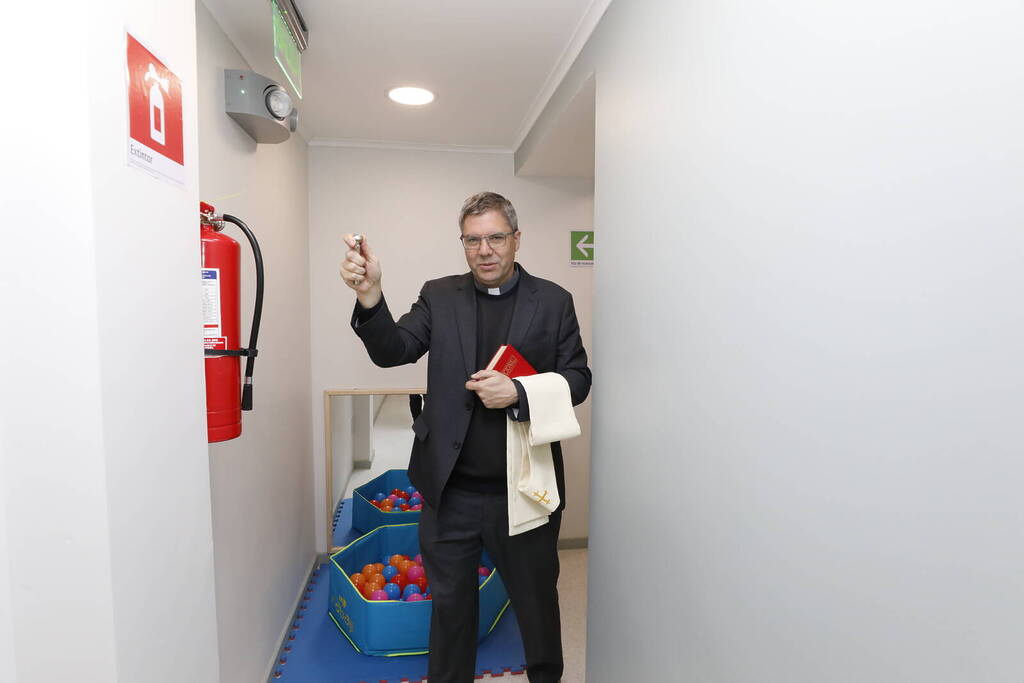 Al término de la ceremonia, el Vice Gran Caniller UC, padre Osvaldo Fernández de Castro, realizó la bendición de la nueva sala cuna.