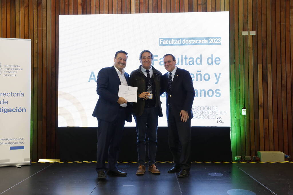 En esta instancia la FADEU recibió el reconocimiento -por quinto año consecutivo- de Facultad Destacada, por obtener 6 patentes, 20 proyectos de I+D adjudicados y 3 spinoffs, y los profesores Roberto Moris (Instituto de Estudios Urbanos y Territoriales y escuela de Arquitectura) y Alberto González (escuela de Diseño) fueron reconocidos como Embajadores de Innovación y Transferencia.