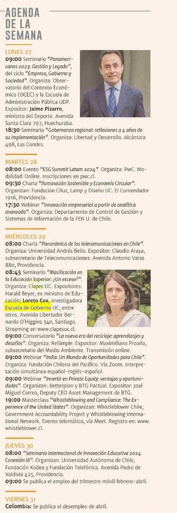 Diario Financiero destaca en Agenda de la semana que el día martes Fundación Ciluz, Lamp y Diseño UC organizan la charla “Iluminación Sostenible y Economía Circular”.