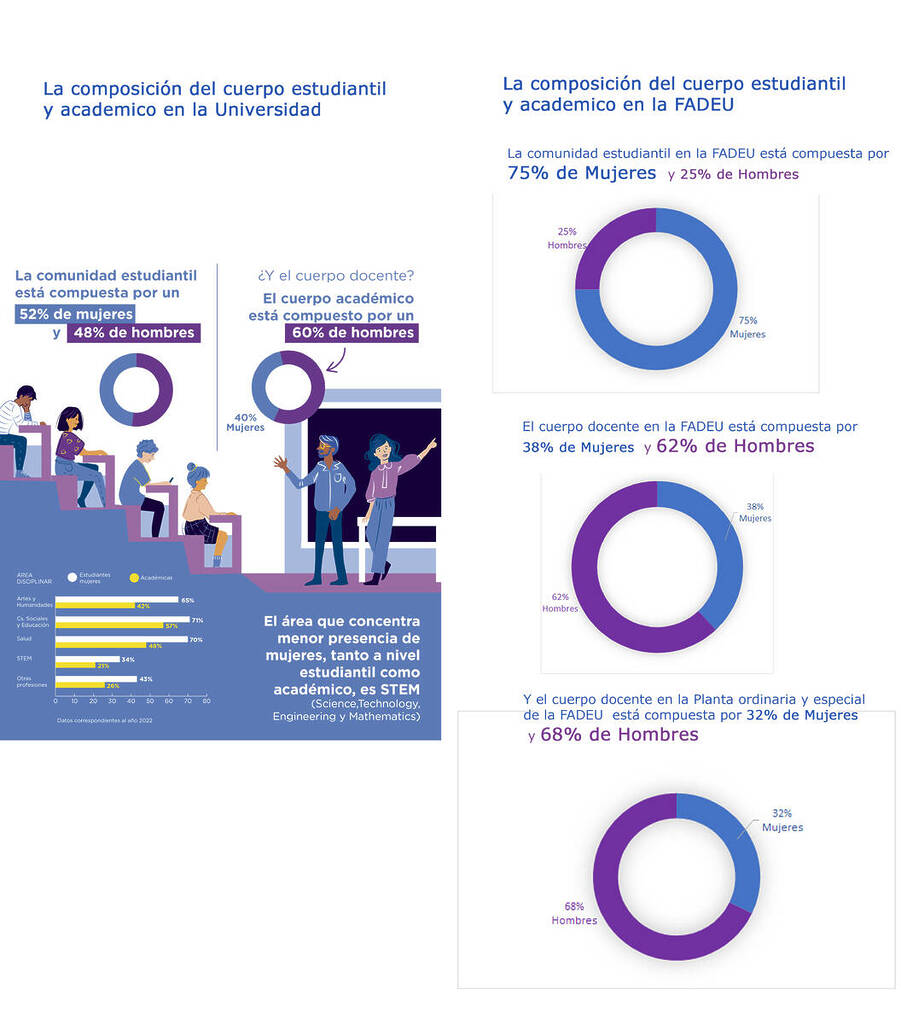 El Observatorio de Equidad de Género, de la Dirección de Equidad de Género VRA UC, entregó un primer Boletín con indicadores de equidad de género en la universidad en general. En éste se presenta el comportamiento de la comunidad estudiantil, la planta académica y el estamento administrativo, entre otros. A continuación se presenta un Boletín comparado de cómo es la realidad en nuestra facultad.