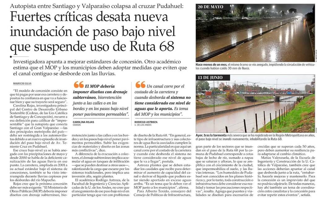 El Mercurio destaca sobre autopista entre Santiago y Valparaíso que colapsa al cruzar Pudahuel. Habla la académica del Instituto de Estudios Urbanos y Territoriales e investigadora de CEDEUS. + Revisa nota completa aquí.