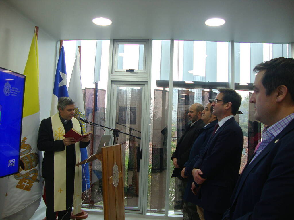 La ceremonia concluyó con la respectiva bendición de este nuevo espacio para la Facultad de Arquitectura, Diseño y Estudios Urbanos, realizada por el Vice Gran canciller UC, Padre Osvaldo Fernández de Castro.