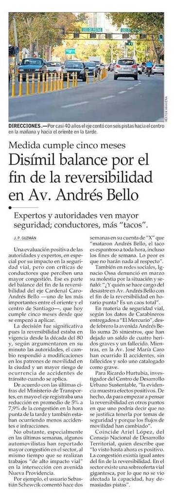 El Mercurio destaca el balance del fin de la reversibilidad en Andrés Bello. Habla el investigador de CEDEUS, Ricardo Huturbia.