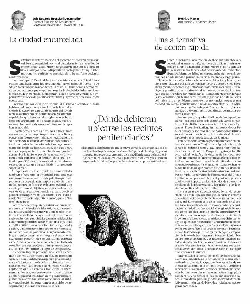 La Tercera publica en sección Frente a frente columna sobre el tema “¿Dónde debieran ubicarse los recintos penitenciarios?” de Luis Eduardo Bresciani, director de la escuela.