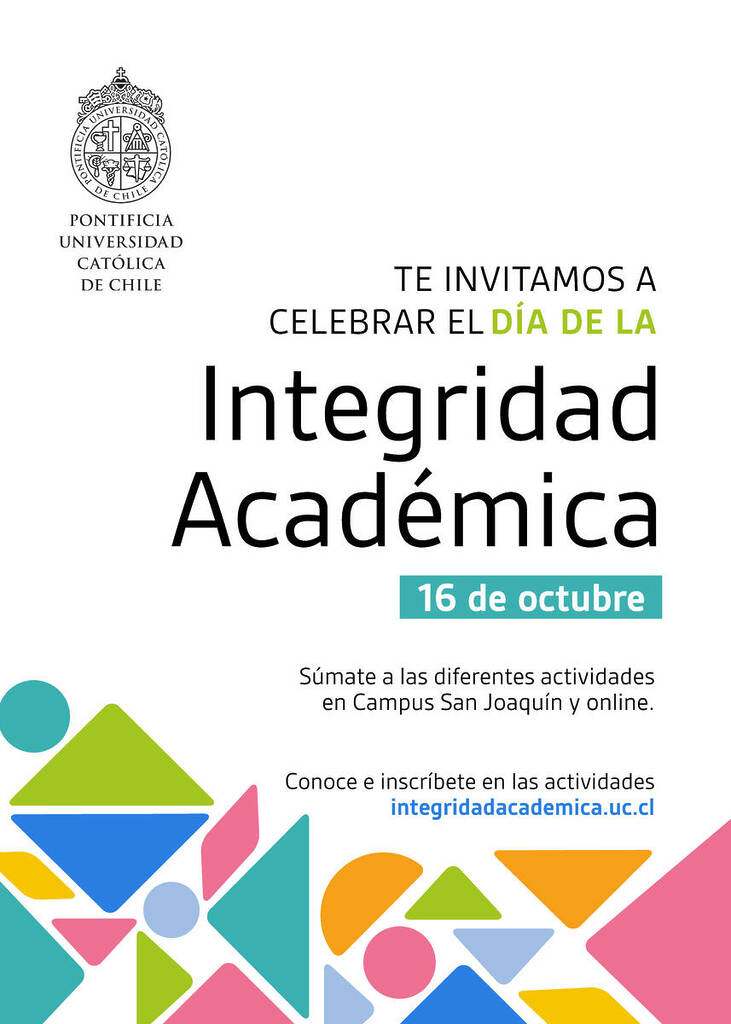 Este 16 de octubre celebraremos el Día Internacional de Acción por la Integridad Académica, en el que buscaremos concientizar a la comunidad UC respecto de la importancia del actuar íntegro y honesto en el ámbito académico. Para eso, la Vicerrectoría Académica ha coordinado una serie de actividades a las que están todos cordialmente invitados.