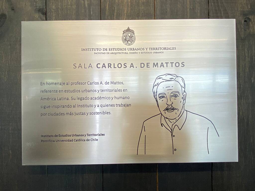 “Es este un acto que sirve para expresar respeto, admiración, reconocimiento y elogio hacia la figura del profesor de Mattos. Y el hecho de inaugurar la Sala de Consejo del Instituto de Estudios Urbanos y Territoriales con el nombre del profesor Carlos de Mattos es un homenaje mayúsculo, por cuanto permite que su nombre perdure, que sea permanentemente recordado y que se proyecte su legado hacia las generaciones futuras”, agregó.