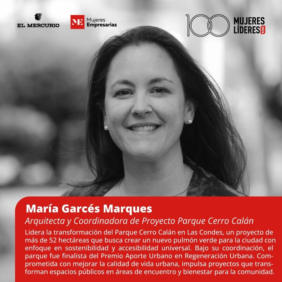 La arquitecta de la Pontificia Universidad Católica, María Garcés, ha sido reconocida por El Mercurio en el listado de las 100 Mujeres Líderes.