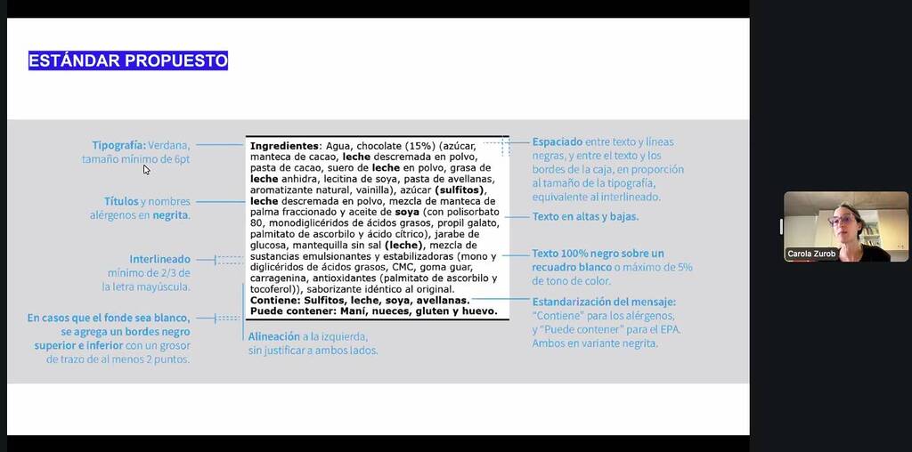 Carola Zurob participa de seminario web sobre el estandar gráfico del etiquetado de alimentos