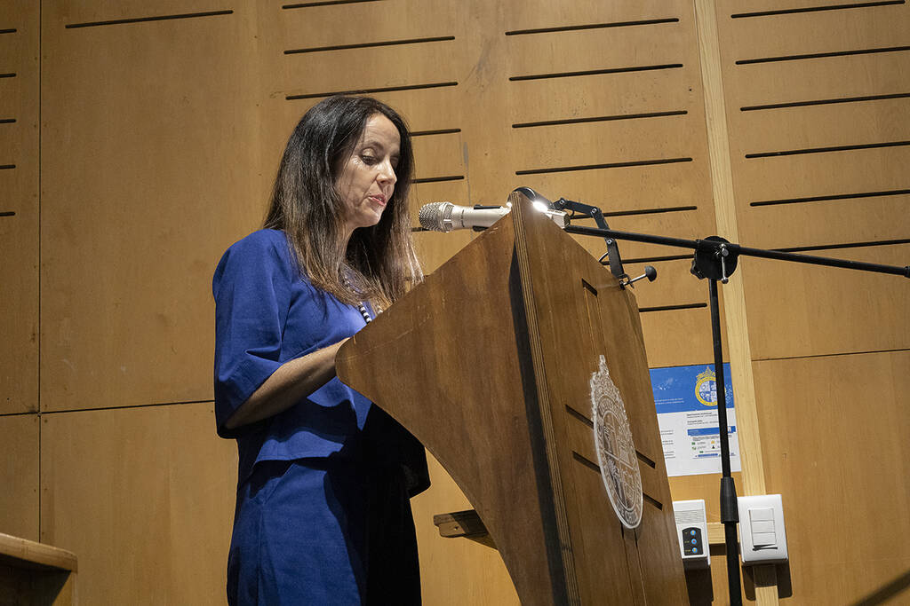 Durante su discurso, la Decana Magdalena Vicuña presentó a quienes asumirán como nuevos directivos en el Decanato FADEU.