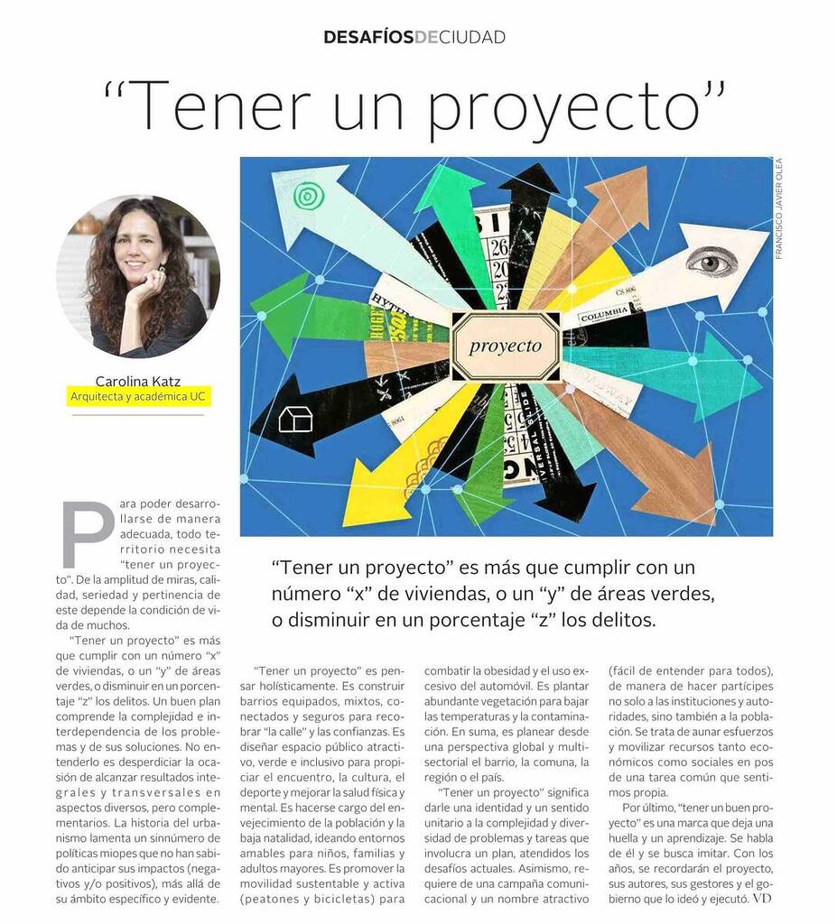 Diario El Mercurio publica columna de opinión de la profesora de la escuela de Arquitectura, Carolina Katz.