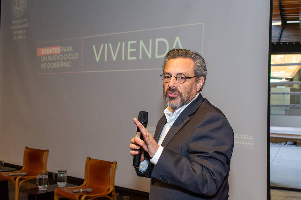 Durante el encuentro, el académico de la escuela de Arquitectura UC y expresidente del Consejo Nacional de Desarrollo Urbano, Luis Eduardo Bresciani, presentó las propuestas en vivienda, elaboradas junto a un equipo interdisciplinario de la universidad y expertos de la fundación Déficit Cero.