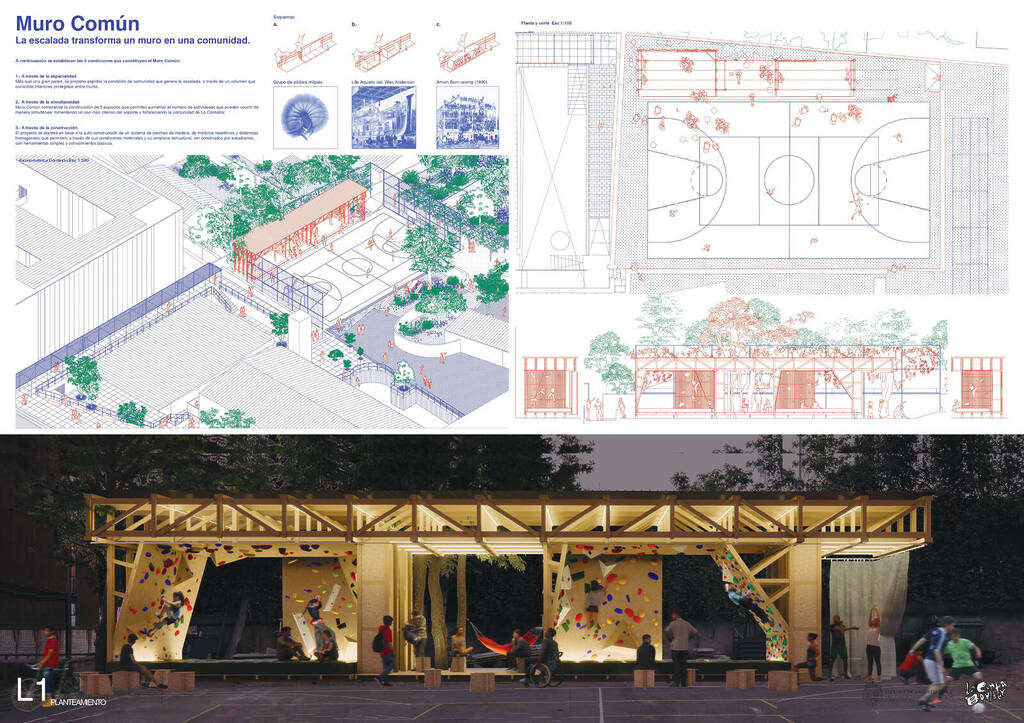 “Muro Común” es el proyecto ganador del Concurso de Diseño del Muro de Escalada Lo Contador, impulsado por LoContaBoulder, agrupación que promueve el desarrollo estudiantil a través de la escalada.
